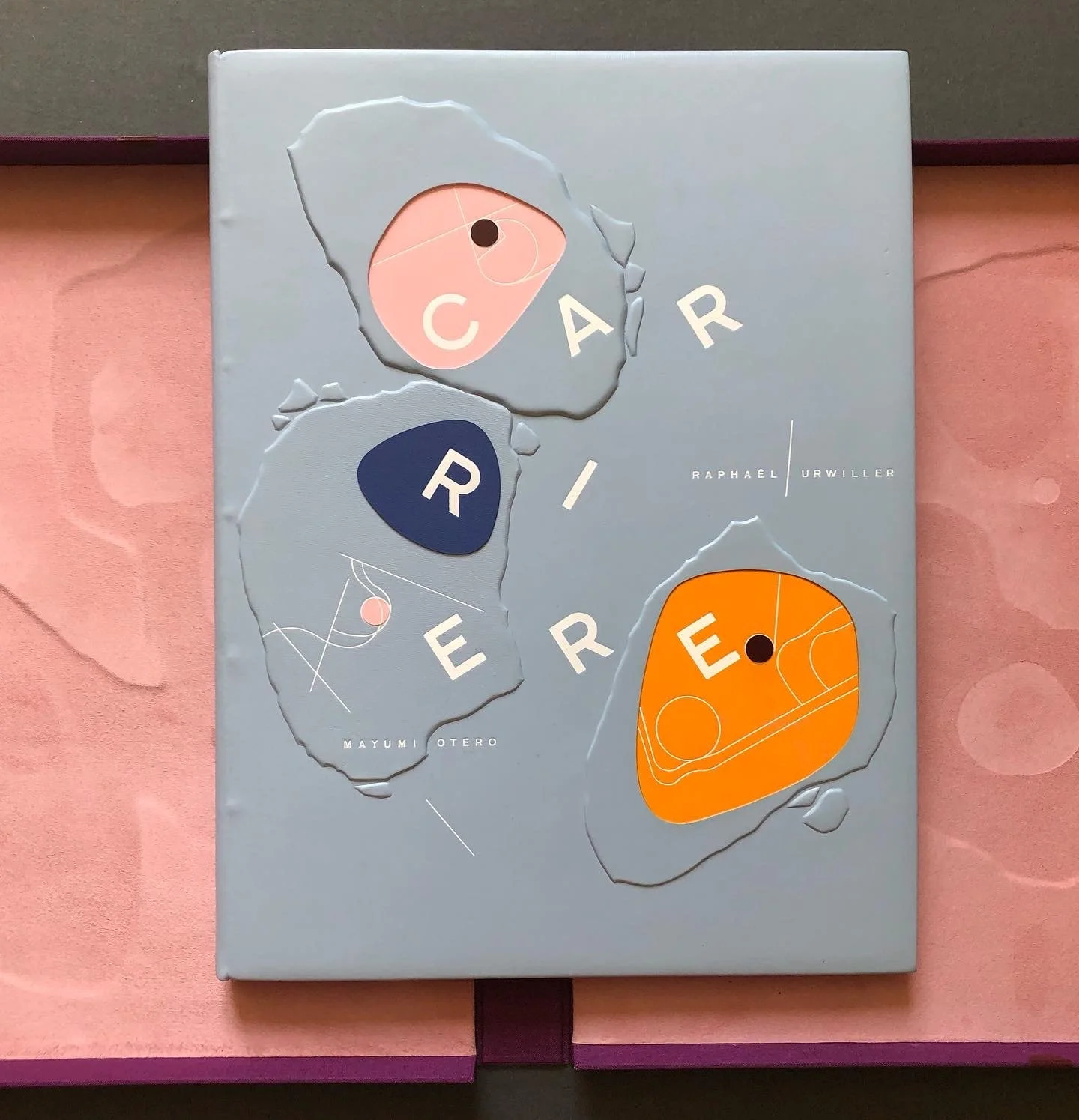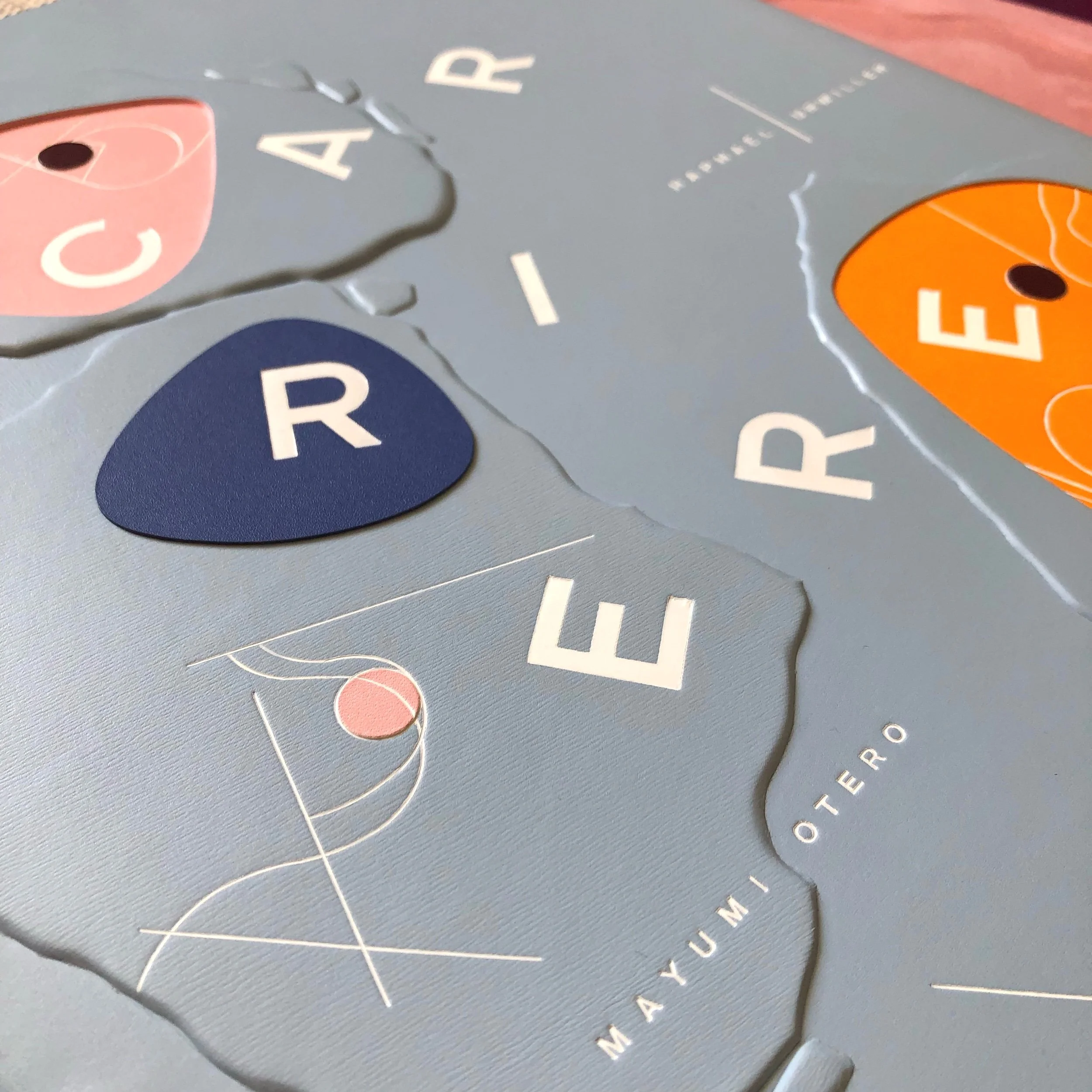 Carrière est un Leporello imprimé en sérigraphie (7 passages) et présentant de nombreuses double-pages en pop-up aux motifs chargés. Il raconte l’histoire d’un fantasme: une ville qui se construit en pensée puis se détruit en même temps que le rêve s’efface. Cette narration parcourt les notions d’ordre et désordre: est-ce que l’artificiel est chaotique?