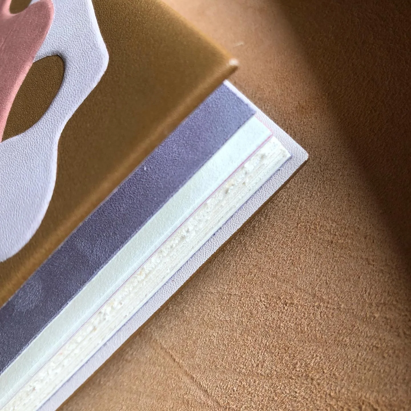 Pleine reliure gardes bords à bords et volantes en daim, tranchefile chapiteau, avec décor en pièces bombées et au film oeser. Dorure réalisée par Geneviève Quarré de Boiry.