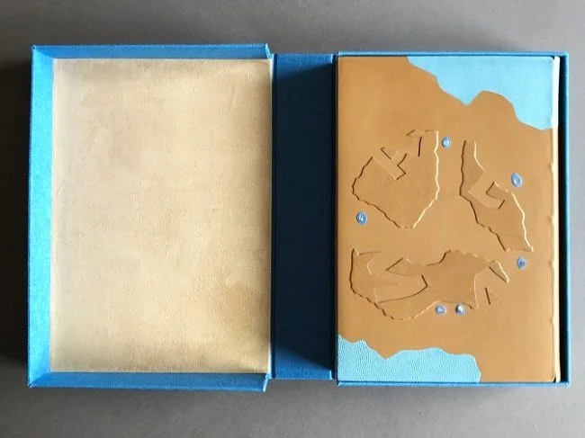 Reliure décorée autour d’un tirage de luxe, avec sa boîte de conservation
